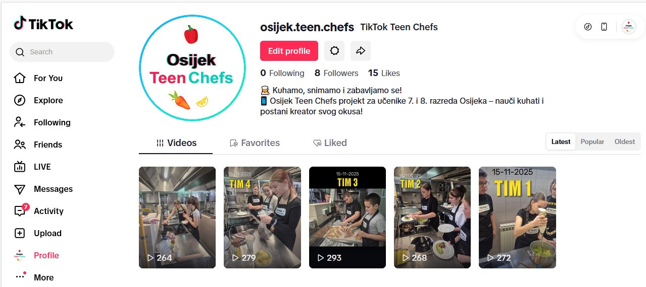Udruga za unapređenje kvalitete života „DIVINUS” u suradnji s Ugostiteljsko-turističkom školom Osijek pokreće novi, zanimljiv i edukativan projekt pod nazivom „TikTok Teen Chefs“, namijenjen učenicima 7. i 8. razreda osnovnih škola grada Osijeka. Projekt je odobren i sufinanciran od strane Grada Osijeka te će se provoditi od studenog do prosinca 2025. godine u prostorijama Ugostiteljsko-turističke škole.